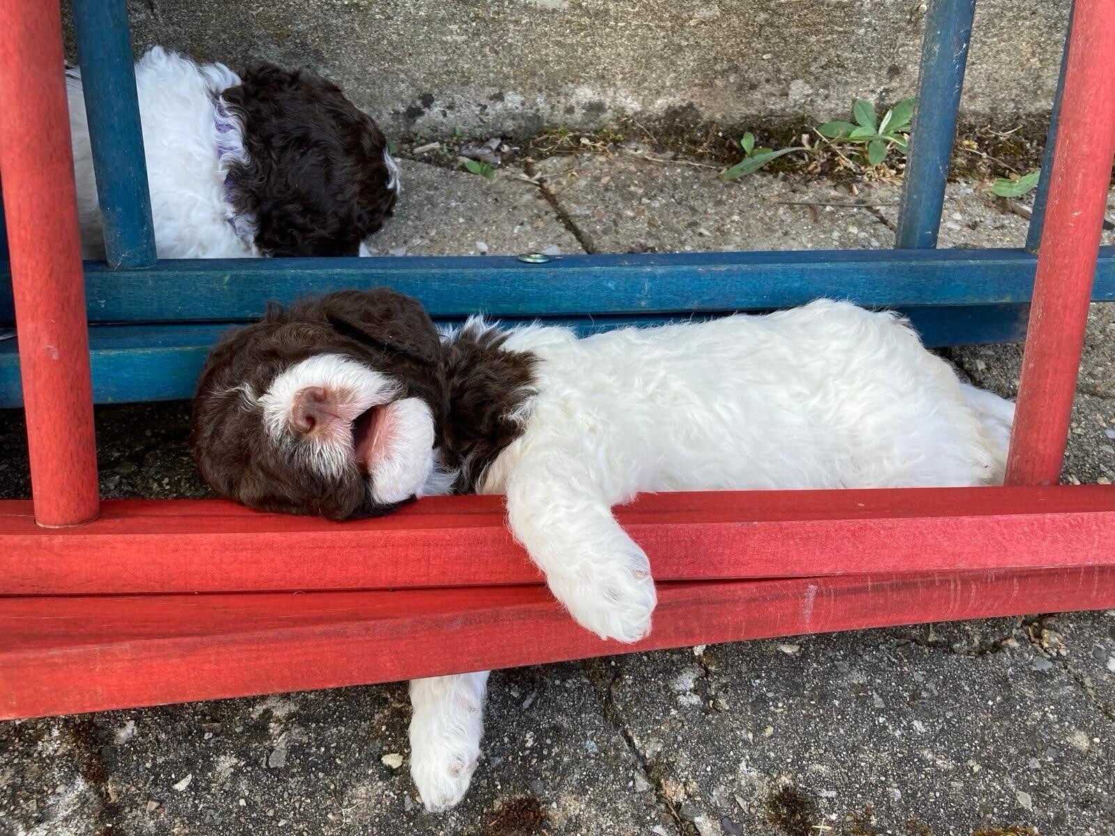 15. und 16. Juni bei den Welpen öffnen sich die Augen und die Ersten versuchen auf ihren vier Pfoten zu stehen.
