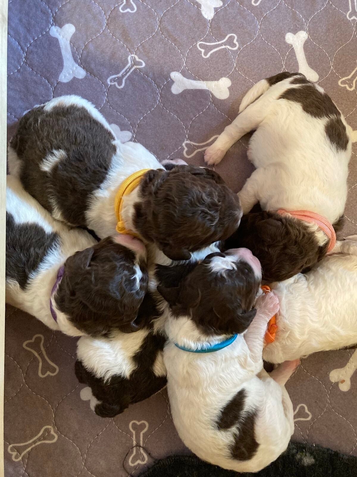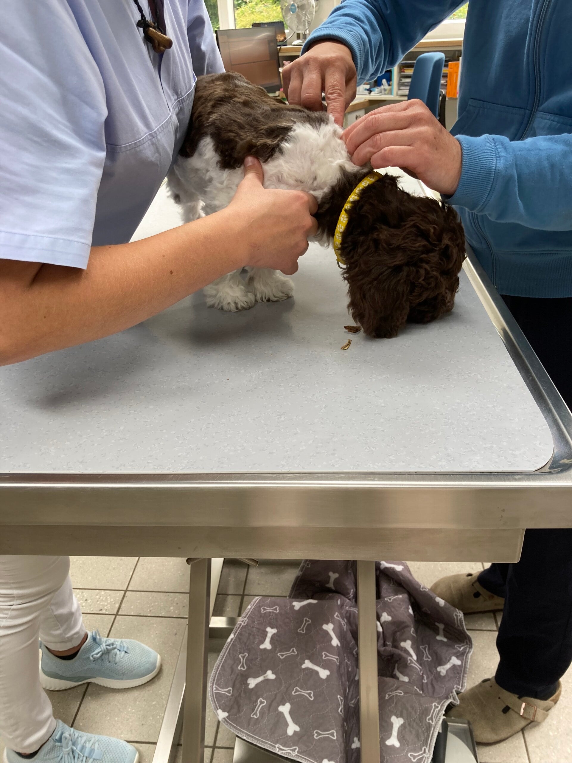 Anfang der 9. Woche Stand der Tierarztbesuch auf dem Programm. Vor dem Abschied stand noch einmal richtig Kuscheln auf dem Programm. Die Welpen zogen Anfang August 2025 bei ihren Familien und tollen Lieblingsmeschen ein.