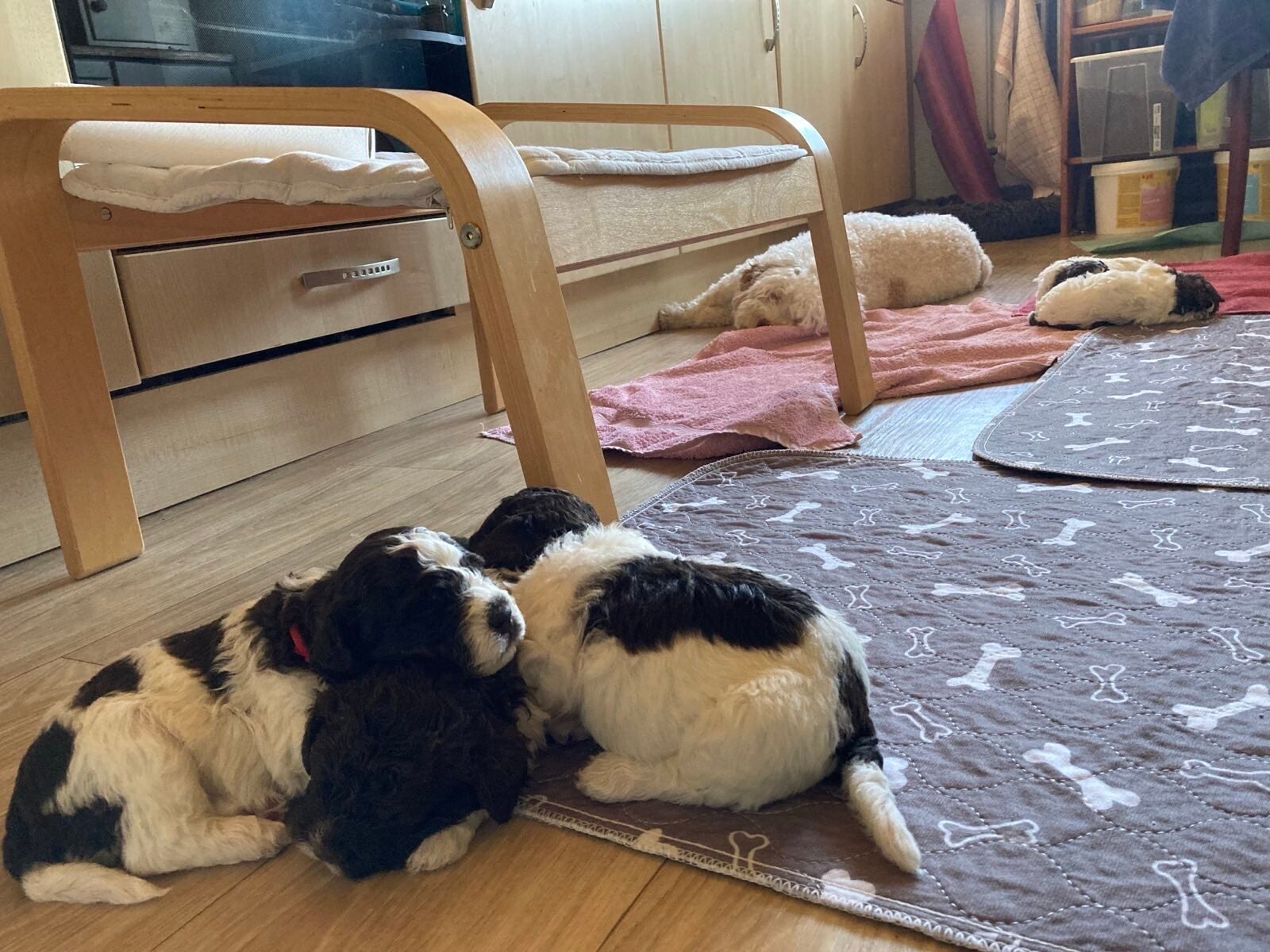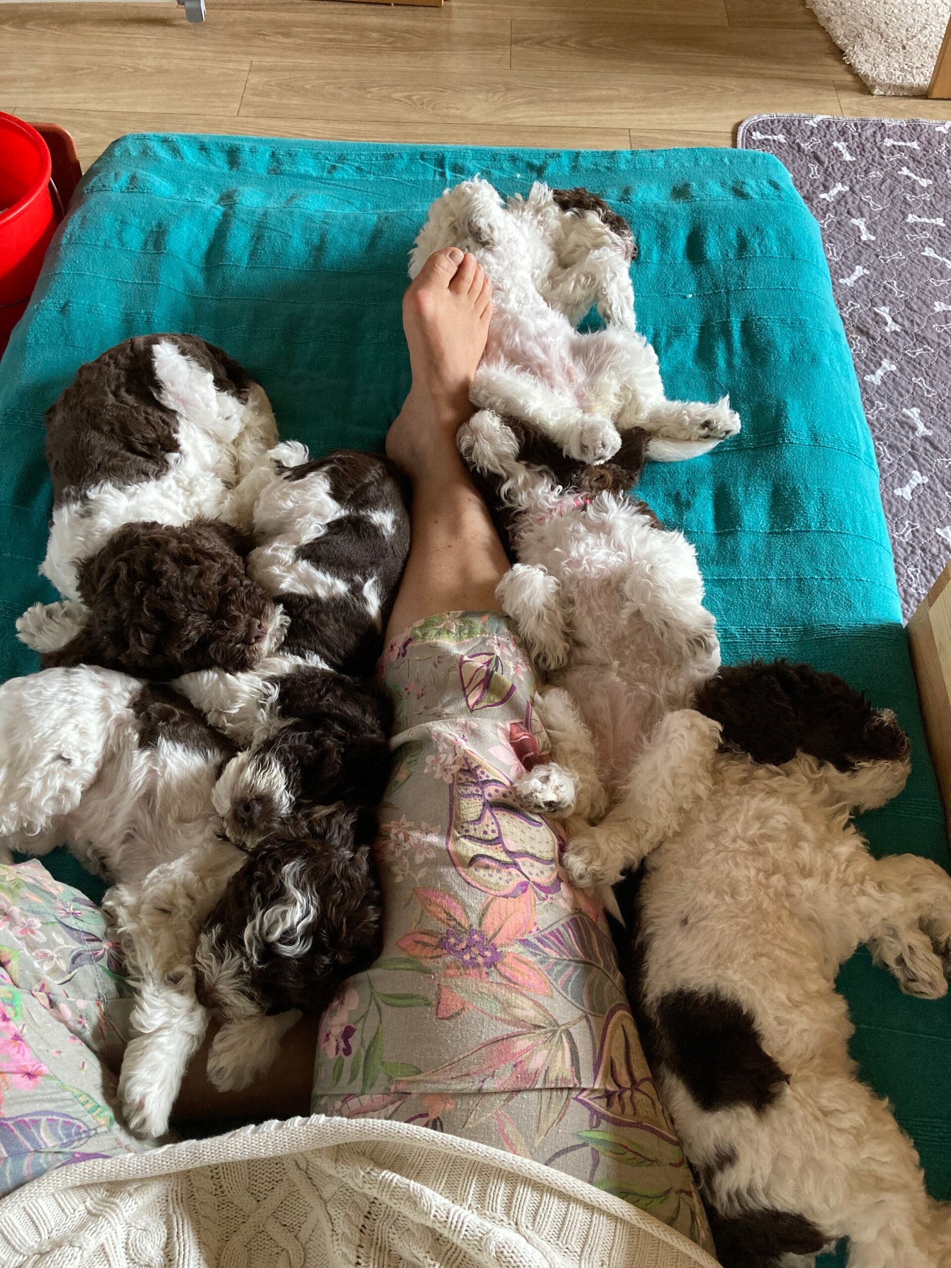 Die Welpen freuen sich über Besuche von Ihren zukünftigen Lieblingsmenschen. Diese tollen Begegnungen und Erfahrungen verarbeiten die Welpen in Ihren Schlafphasen,