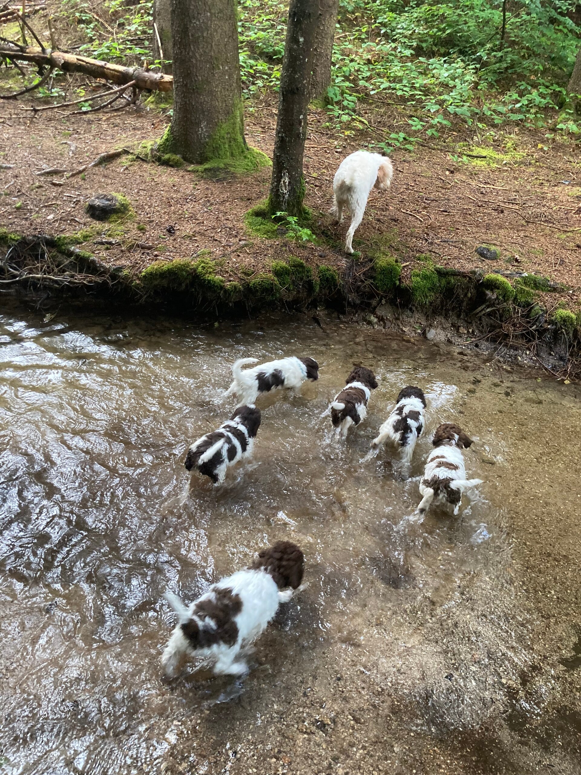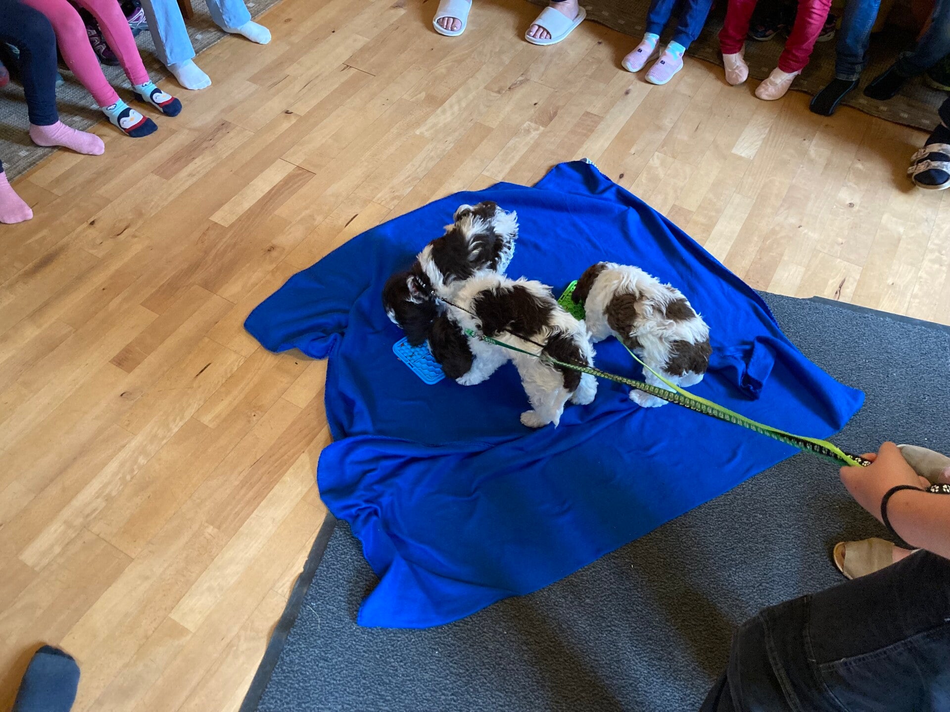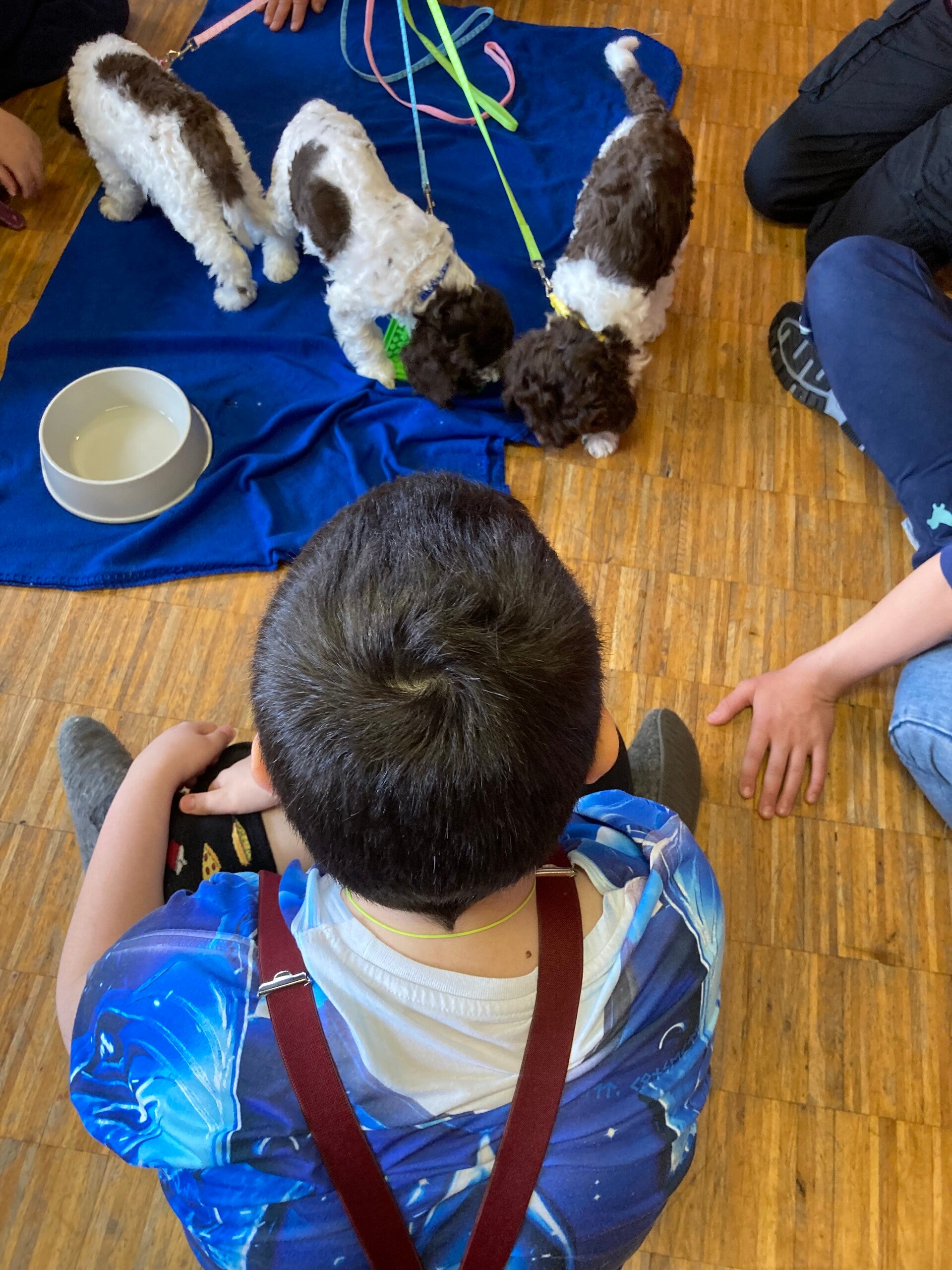 In der 8. Woche haben wir noch mit den Welpen Besuche im Kindergarten,in einer Schule für Menschen mit Assistenzbedarf und in einem Seniorenheim unternommen. Die Welpen waren sehr interessiert an den verschiedenen Lebenswelten.